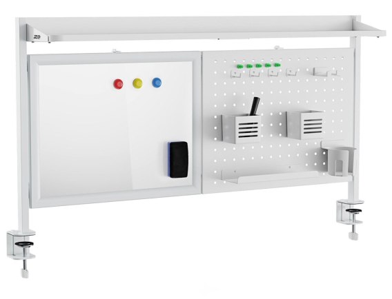 Informacje dodatkowe: Wymiary tablicy perforowanej: 535 x 415 mm, Wymiary tablicy magnetycznej: 525 x 415 mm, Wymiary półki: 1073 x 185 mm, Maksymalne obciążenie: 10 kg (na warstwę), Materiały wykonania: płyta wiórowa klasy E0, stal